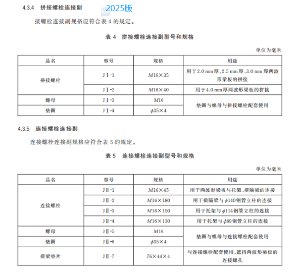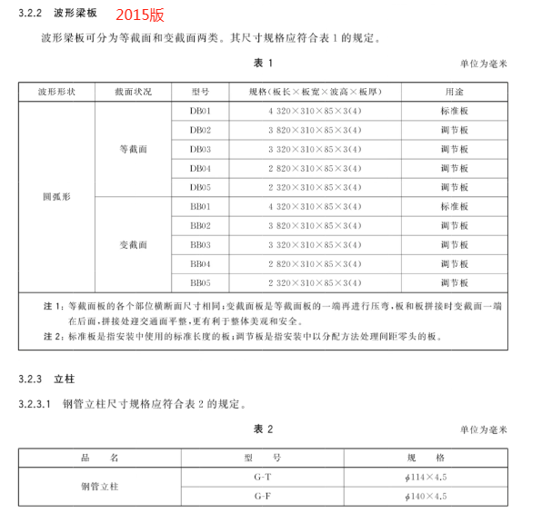 c) 更 改 了 兩 波 形 梁 板 、鋼 管 立 柱 的 用 途 、型 號(hào) 和 規(guī) 格(見 4.3.1、4.3.2,2015 年 版 的 3.2.2、3.2.3.1);