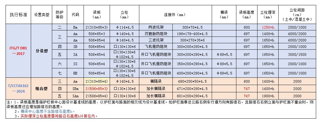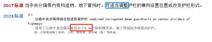 這兩個標(biāo)準(zhǔn)分別對應(yīng)了分設(shè)型和組合型中央分隔帶波形護(hù)欄的設(shè)置要求: