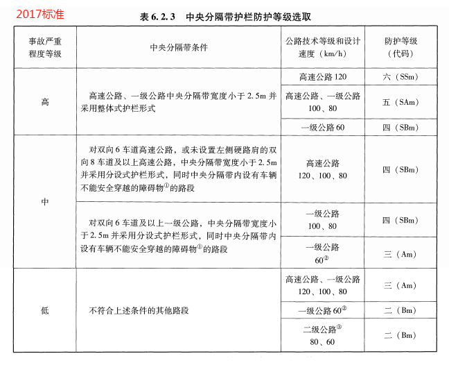 中央分隔帶護(hù)欄的設(shè)置及防護(hù)等級的選取應(yīng)符合下列規(guī)定: