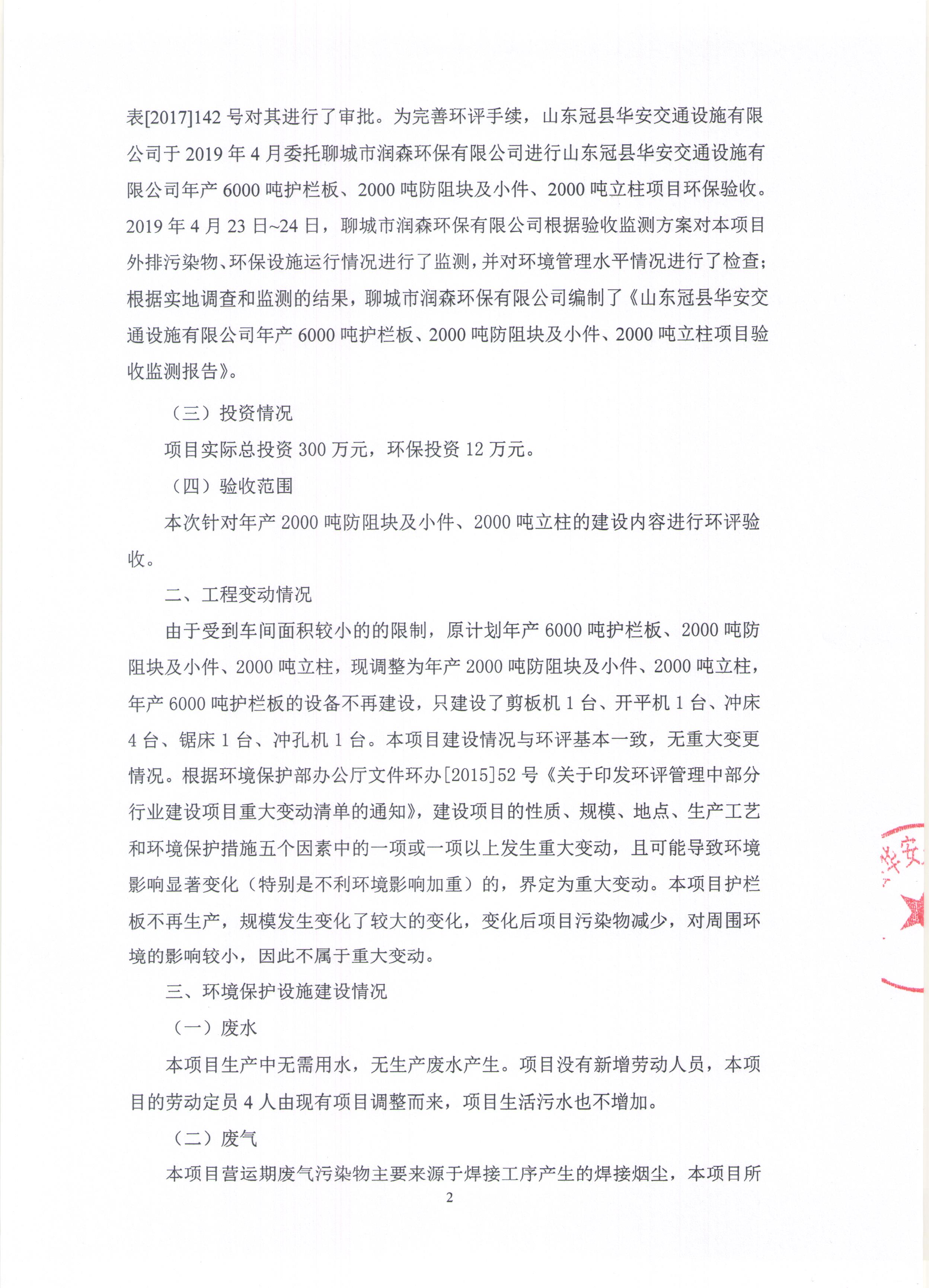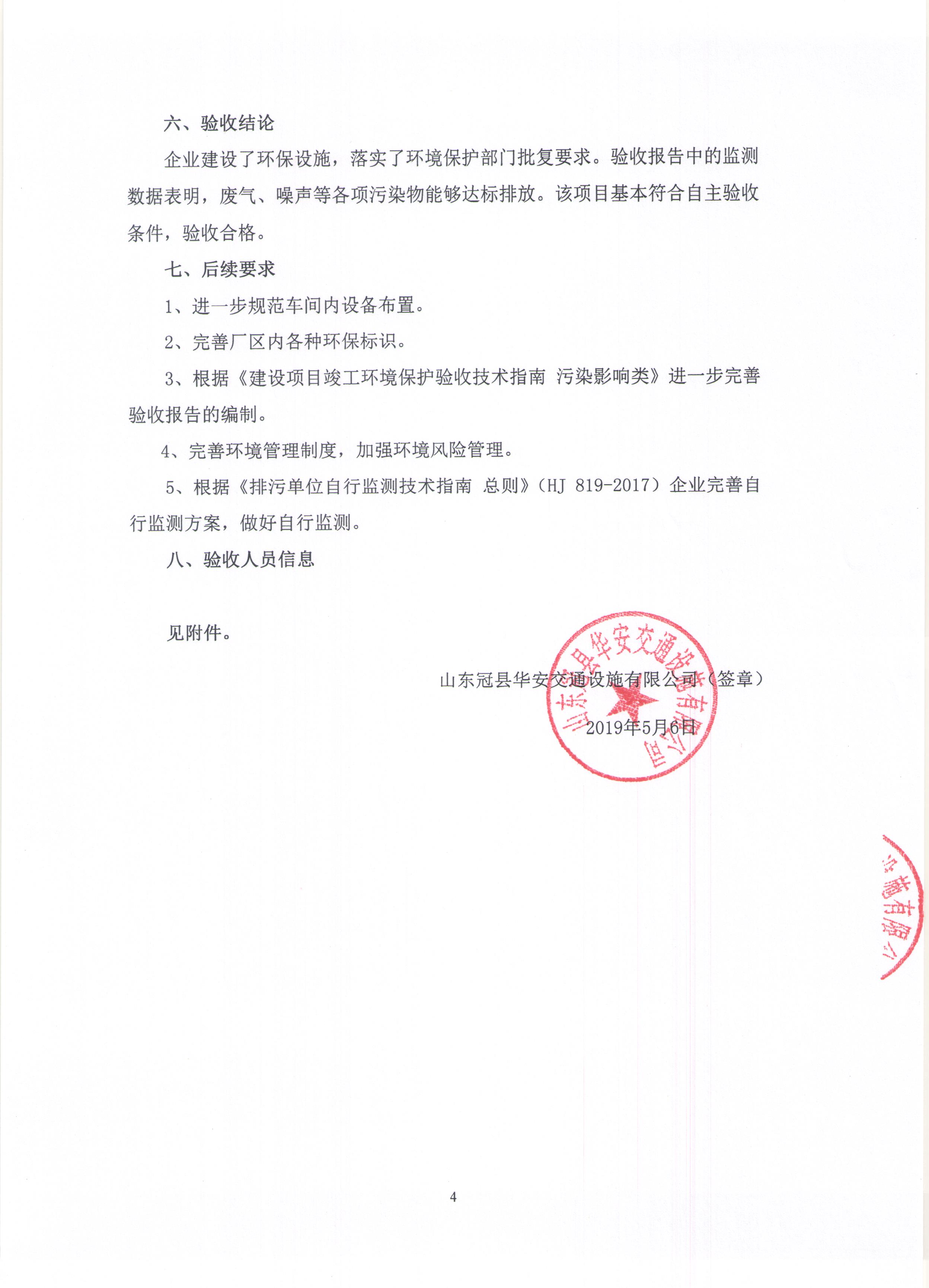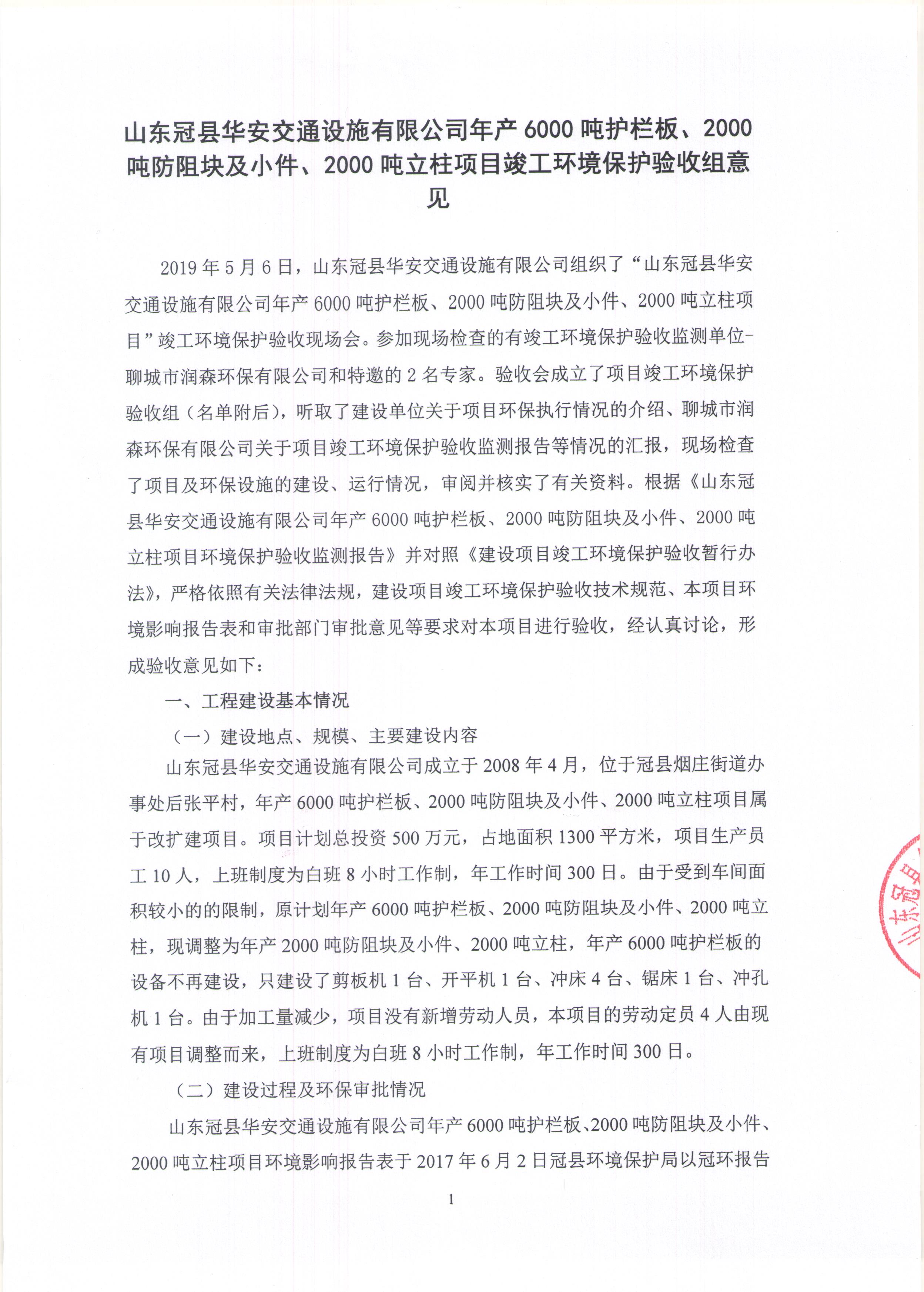 山東冠縣華安交通設有限公司新項目竣工環境保護驗收組意見公示